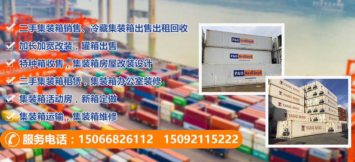 主營;二手集裝箱銷售、冷藏集裝箱出售出租回收、加長加寬改裝,罐箱出售,特種箱收售,集裝箱房屋改裝設(shè)計(jì),二手集裝箱租賃,集裝箱辦公室裝修,集裝箱活動房,新箱定做,集裝箱運(yùn)輸,集裝箱維修等業(yè)務(wù)